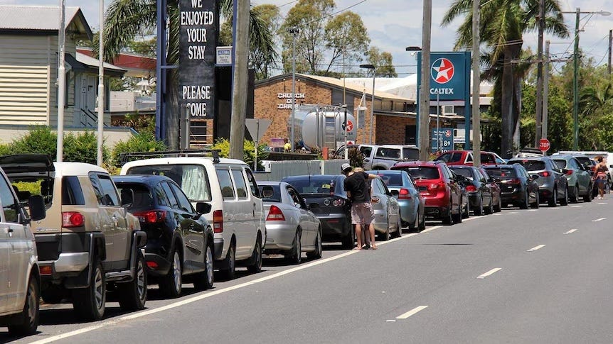 三月中旬,新南威爾士州有 107間加油站沒有柴油,42間完全斷供。偏遠小鎮如羅賓維爾(Robinvale)實施每車 50澳元的入油上限,農民優先,通勤者靠後。